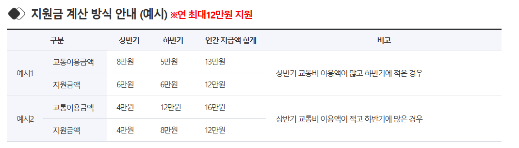 - 하반기 사용 금액: 7월~12월 사용 교통비 기준.
