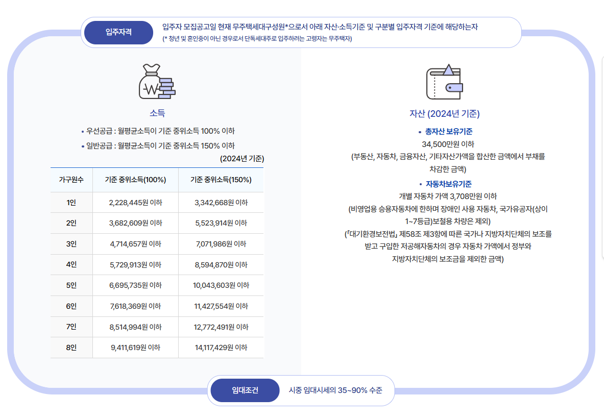 - 장애인, 한부모가족 등 일부 특수 계층은 완화된 소득 기준이 적용될 수 있습니다.
