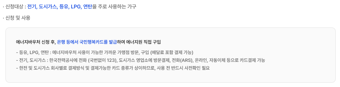 - 사용처 제한: 지정된 에너지 공급사에서만 사용 가능하니 꼭 확인하세요.