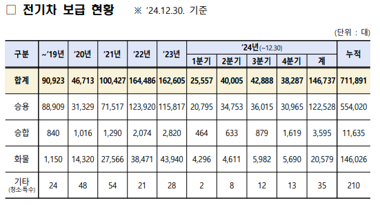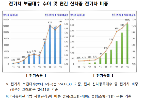 - 추가 지원 대상 확대: 청년의 생애 첫 차 구매 시 보조금 20% 추가 지원, 다자녀 가구에 대한 정액 지원(100~300만 원) 등 실수요자에 대한 지원을 강화하였습니다.