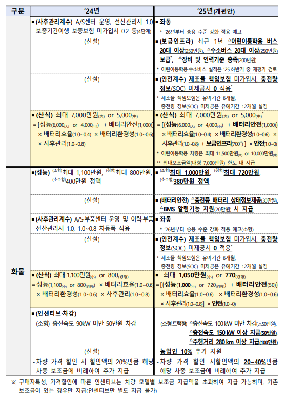 - 제조물 책임보험 의무화: 제조사의 책임을 강화하기 위해, 제조물 책임보험에 가입된 차량에만 보조금을 지급하는 방안을 추진하고 있습니다.