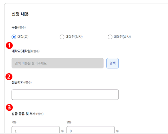 - 본인의 출신 학교를 선택 후 요청하면 발급 가능합니다.