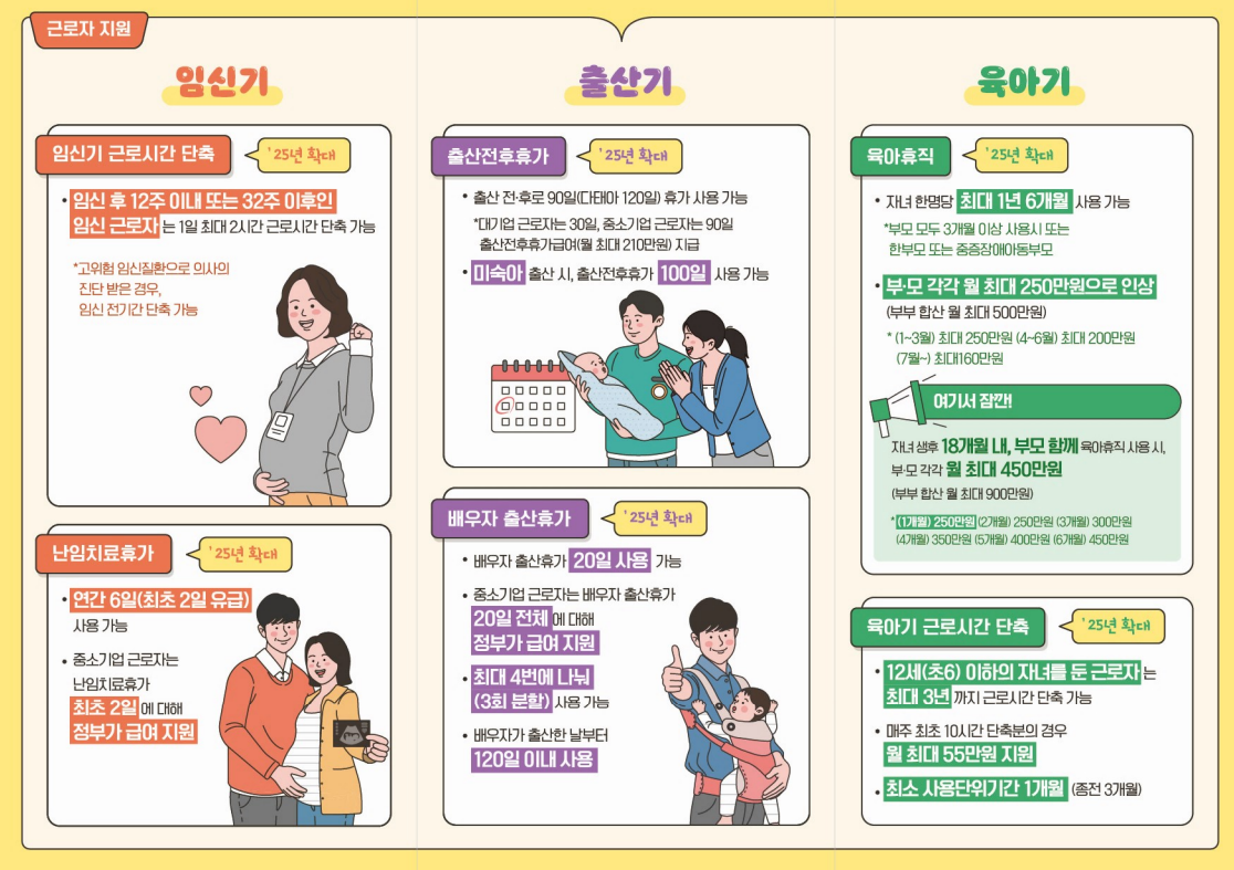 25년에는 출산뿐만 아니라 육아와 교육을 지원하는 혜택도 강화됩니다.